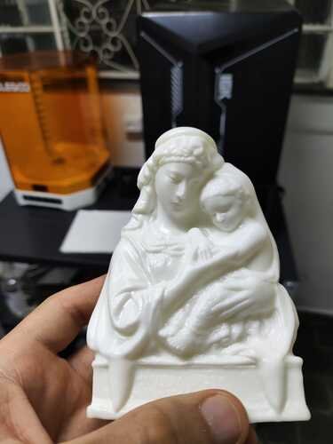 É aqui que, com uma impressora 3D simples e muita devoção, eu crio esculturas religiosas, imagens de santos, feitas para levar o sagrado de volta aos corações e lares brasileiros.