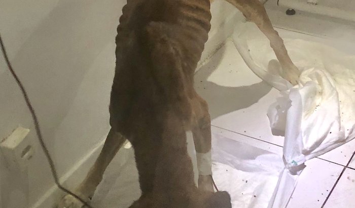 Cachorro resgatado vítima de maus tratos. Deixado no fundo do quintal pra morrer. Pedi ele ao dono e imediatamente dei o remédio para carrapatos, banho e levei ao vet. Hematócrito 10. Fez transfusão emergencial, pois estava correndo risco de vida. A veterinária disse que se demorássemos uma hora... Vakinha destinada à sua recuperação e agora para ajudar seus 2 irmãos também.