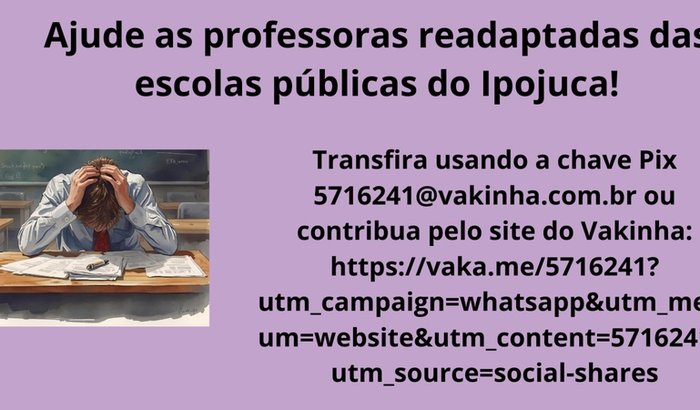 Assim, pedimos ajuda de R$ 20,00 ou mais para 4 (quatro) professoras apenas para pagar a entrada dos honorários advocatícios, ou qualquer valor que possam.