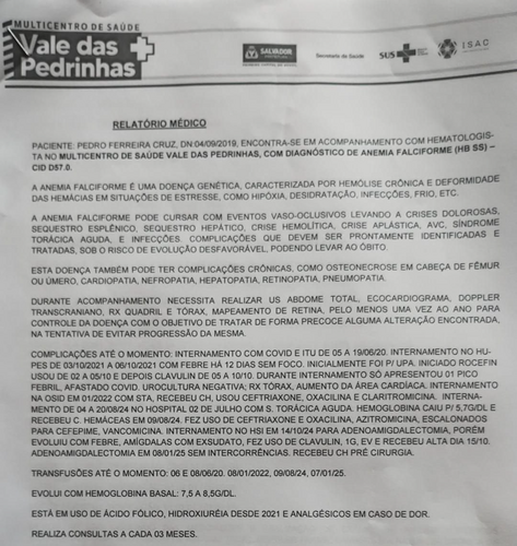 Aqui está o relatório médico com detalhes sobre nossa jornada até agora: