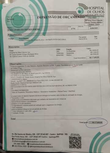 O custo total do tratamento — incluindo a cirurgia, exames diagnósticos e medicamentos do pós-operatório — é de R$ 21.000,00.Qualquer contribuição, por menor que seja, fará uma diferença imensa nessa jornada pela minha saúde e qualidade de vida.