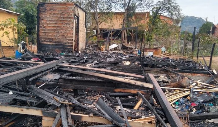 Nossa casa de madeira construída por nós mesmos, localizada na Rua Maria Elza Braun, Loteamento Kephas, bairro Diehl, foi destruída por um incêndio na noite de sexta-feira, 12. Nada sobrou. Nossa família, que estava na casa quando as chamas iniciaram, teve tempo apenas de sair correndo, deixando o lar para trás.