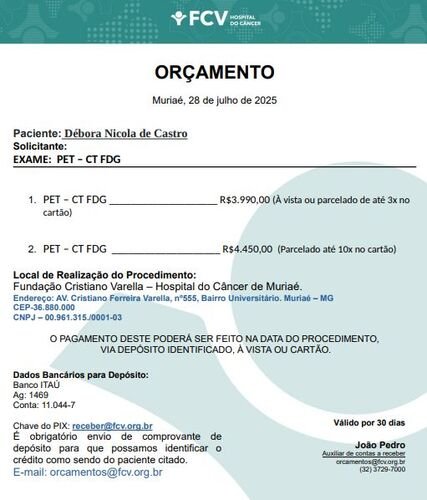 Preciso com urgência realizar este exame para enfim saber onde se encontra de fato tumor e iniciar o tratamento.