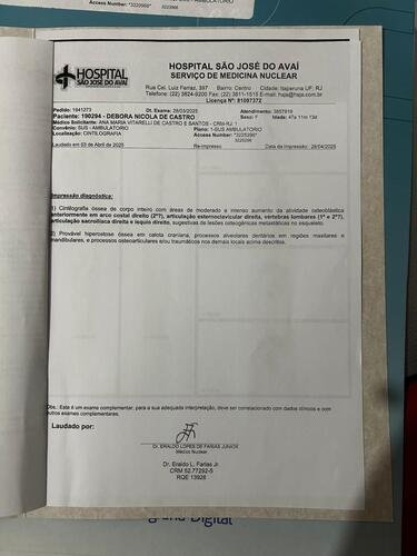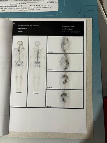 Olá, meu nome é Débora, tenho 48 anos, dois filhos e sou ex-faxineira. Há 10 anos tratei um câncer de mama com cirurgia, quimio e radioterapia. Recentemente, descobri novos nódulos e lesões osteogênicas nos ossos.