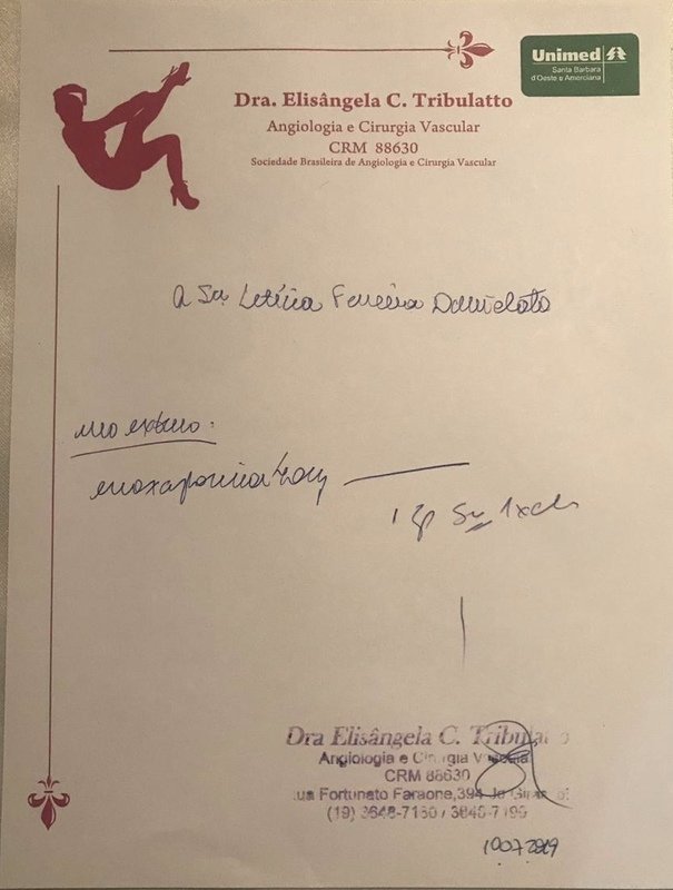 Durante as primeiras consultas logo descobrimos que devido ao histórico de trombose eu teria que tomar injeções diárias de Enoxaparina, um anti coagulante para que nem o bebê, nem eu corramos riscos... logo pegamos a receita e tudo que era necessário para que fossemos pegar a medicação pelo SUS, porém, lá soubemos que não estava sendo fornecido na cidade e que teria que entrar com processo judicial para conseguir a medicação, procurei ajuda e uma ONG da cidade está cuidando do processo para envio imediato das injeções mas até o momento o processo não caminhou.