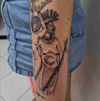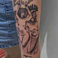 Apesar de estar apenas a 2 anos no ramo das tatuagens, sempre busquei retratar por meio do meu trabalho referências da minha religião, referências raciais e das coisas que eu acredito. Meu trabalho é político. Alem de ser de onde tiro meu sustento, é um projeto para autoestima de pessoas pretas, e é também um jeito de viver Orisá por meio da arte.