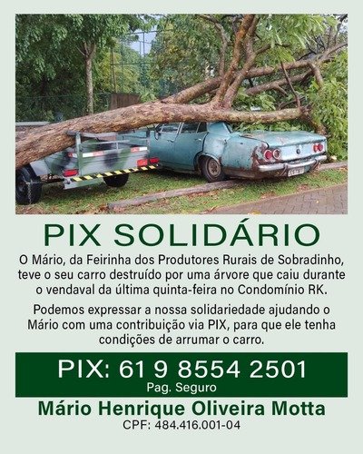 Podemos expressar a nossa solidariedade ajudando o Mário com uma contribuição via PIX, para que ele tenha condições de arrumar o carro.