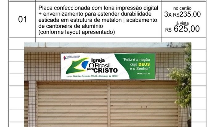Placa para igreja o Brasil para Cristo em Recreio mg