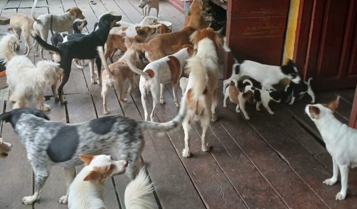 • Olá, sou Noemia e, atualmente, moro com 61 cães na Estrada da Emade, em Tefé. Ganhei um terreno e preciso, com urgência, construir um lar para mim e para meus cães. Inicialmente, é necessário erguer um muro no terreno com cobertura para abrigar os animais. O local onde estou morando foi cedido por tempo limitado e os donos precisam retornar.