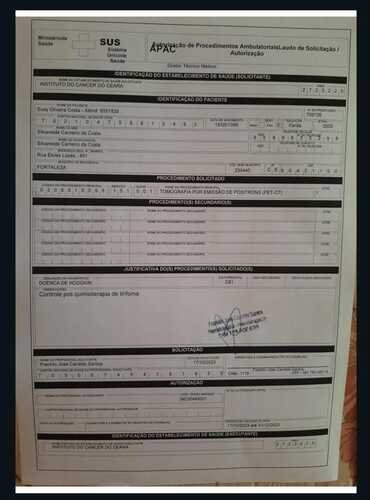 Infelizmente, o custo do exame PET-CT é muito alto, e estou enfrentando dificuldades financeiras para cobrir essa despesa. É por isso que estou pedindo sua ajuda e apoio.Segue um Anexo, para tirar Dúvidas: