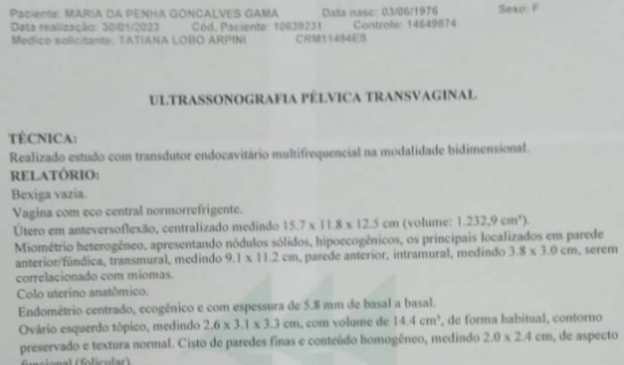 alguns miomas - de 3, 5, 9 e 15cm em meu útero pressionam minha bexiga e reto fazendo com que eu esteja constantemente com vontade de ir ao banheiro, mesmo após utilizá-lo. A retirada desse órgão me propiciará maior qualidade de vida em todos os aspectos, mas principalmente no trabalho. Gratidão por sua atenção!