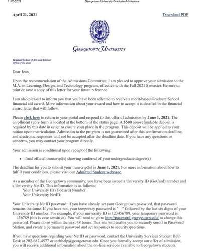 Devido ao meu alto rendimento acadêmico, a Georgetown University me concedeu uma bolsa mérito no valor de U$ 13,000.00 e um emprego para ajudar nos custos. os dois recursos financeiros cobrem 40% do total dos custos de estudo (matrícula e custo de vida).