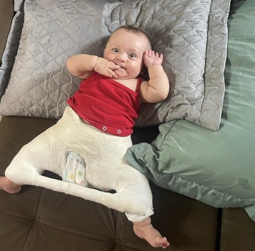 Eu tenho displasia de quadril em nível IV, o mais grave que existe. Isso significa que meu quadril não está no lugar certo, e se não for consertado logo, eu posso nunca conseguir andar e sentir muita dor no futuro. Meu tratamento já começou tarde por conta da minha prematuridade, era para mim ter usado um suspensório chamado Pavlik, mais durante esse período aconteceu mais um imprevisto. Tive uma hérnia inguinal ( na minha virilha ) e precisei passar por uma cirurgia com apenas 3 meses. Nisso atrasou ainda mais meu tratamento, logo que me recuperei fui ao ortopedista pediátrico, e já não conseguia mais usar o suspensório. O novo tratamento seria o gesso, com isso entrei mais uma vez ao centro cirúrgico e fui anestesiada. Mas meu quadril é irredutível, não conseguiram fazer o encaixe.