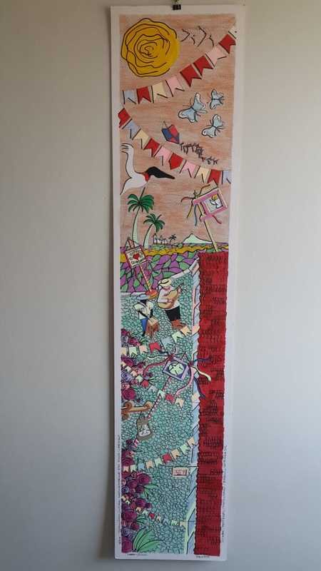 Descrição: Nanquim e posca sobre papel-cartão, 152x33cm