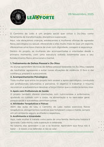 Estamos levantando um projeto social de Jiu-Jitsu para crianças e mulheres que precisam de acolhimento, segurança e uma chance real de recomeçar.