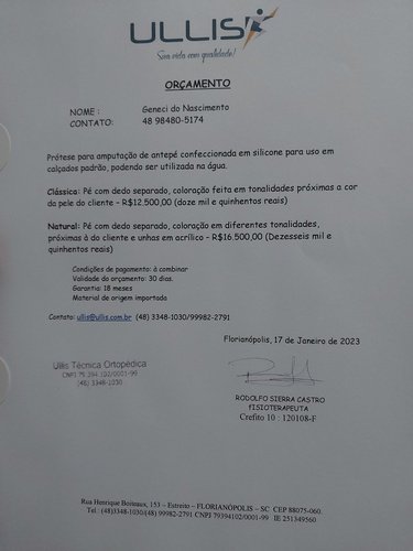 Eu sou Geneci,e criei essa vaquinha pois preciso arrecadar R$16.500,00 para comprar minha prótese antepé,perdi metade do meu pé em 2007 e sempre foi o meu sonho poder colocar uma sandalia novamente pois desde então uso só sapato fechado e é ruim em dias de calor gostaria muito de realizar esse sonho quem poder me ajudar nesse sonho eu agradeço.🥰