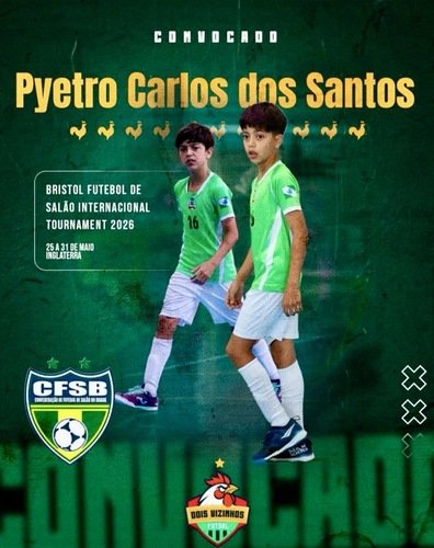 Eu sou o Pyetro Carlos, meu sonho é ser jogador de futebol e fui convocado para jogar em Bristol (Inglaterra), evento Tournament 2026 Futebol de Salão Internacional, organizado pela Fifusa, representando o Brasil, me esforcei muito para chegar até aqui, porém minha família e parentes não conseguimos arrecadar todo o valor necessário, gostaria de contar com a ajuda de vocês com qualquer valor para que este sonho se torne realidade.