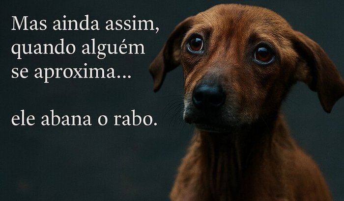 Desde aquele dia, nunca mais fui o mesmo.Passei a ver todos os cachorros de rua como se fossem aquele primeiro olhar, pedindo socorro.Mas a dor é grande demais pra carregar sozinho.Tem muitos — muitos mesmo — que ainda estão nas ruas, famintos, doentes, machucados, com frio e sem ninguém por eles.E é por isso que eu decidi fazer algo maior.