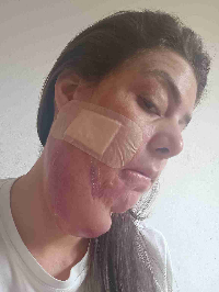Oi, gente. Me chamo Ana Carolina. Me queimei com 2 anos de idade, tendo uma queimadura de 3º grau. Até hoje, faço cirurgias. Já com 26 anos, estou com um expansor de tecido e preciso de ajuda. Devido ao expansor ser pesado, pode estourar, então tive que sair do serviço. Conto com a ajuda de vocês