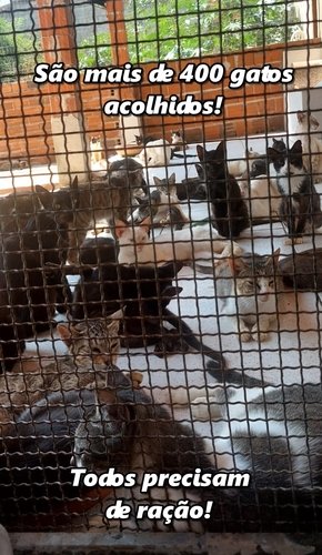Hoje temos mais de 600 animais entre cães e gatos e nossa maior dificuldade é conseguir alimentar todas essas vidas.