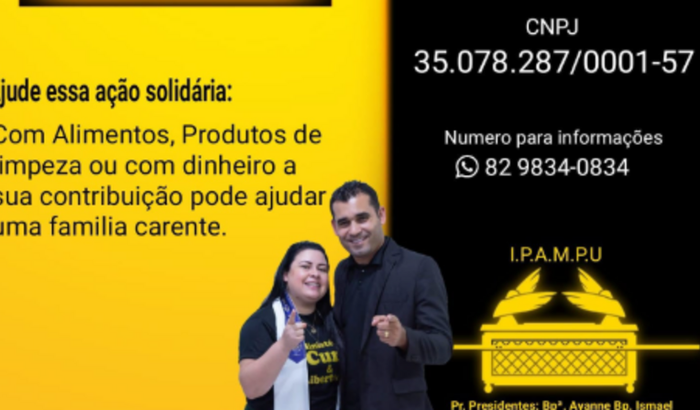 MINISTÉRIO PROFÉTICA UNÇÃO. AJUDE COM ESSA AÇÃO SOLIDÁRIA, VOCE PODE AJUDAR COM ALIMENTOS, PRODUTOS DE LIMPEZA OU COM DINHEIRO. A SUA CNTRIBUIÇÃO IRÁ AJUDAR NA REALIZAÇÃO DE 300 CESTAS BÁSICAS PARA FAMILIAS CARENTES.