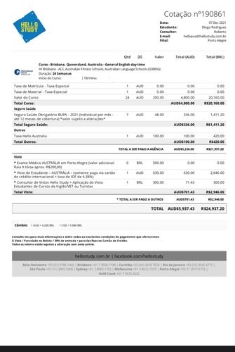 Este foi o orçamento que fechei o intercâmbio…