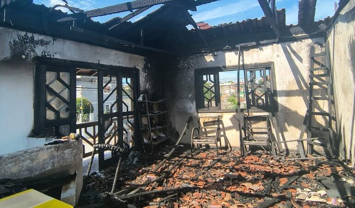 Infelizmente todo o telhado da casa foi comprometido e a estrutura não está estável, fomos liberados para pegar o que precisavamos da parte de cima mas ainda é perigoso estar dentro da residência por conta do perigo de desabamento do telhado. O chão esta coberto de telhas de ceramica, cinzas, escombros e etc