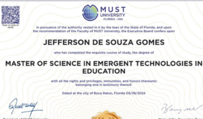 Fiz o mestrado em tecnologias emergentes em educação pela must university - Flórida/EUA e preciso arcar com os custos para reconhecer o diploma no Brasil.