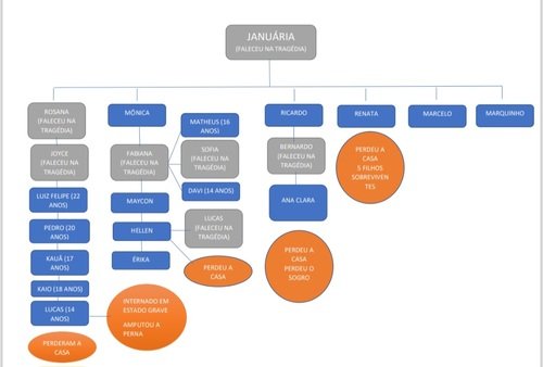 Januária Garcia foi uma mulher guerreira, doce, solidária. Perdeu sua mãe antes dos quinze anos, criando seus irmãos mais novos. De família numerosa, a sua não foi diferente. Mãe solo de seis filhos ,sempre foi o braço forte (e o coração gigante) dessa família. Januária era a matriarca da família mais atingida na tragédia de Juiz de Fora. Muito mortos, mas muitos sobreviventes que precisam de nossa ajuda. Exemplo disso é sua filha Rosana, falecida na tragédia junto com sua filha Joyce. Rosana deixou cinco filhos. Um deles está em estado grave no CTI do HPS, tendo amputado uma perna no dia 28 de fevereiro. Mônica, a filha mais velha de Jane, perdeu, Fabiana, sua filha, e dois netos, Sofia e Lucas. Sua casa está interditada.  Sobreviveram Hellen, Érika e Maycon. Hellen perdeu seu filho. Mônica tem ainda 5 netos. Ricardo perdeu Bernardo, nosso Tomatinho, seu sogro e sua casa. Ana Clara, sua filha, e Cida, sua esposa, estão bem! Renata perdeu a casa. Todos os cinco filhos sobreviveram com saúde. Marcelo e sua família não sofreram danos materiais.Marquinho, o filho de Jane já falecido, deixou dois filhos que também não sofreram danos materiais.Nossa vaquinha tem por objetivo reconstruir a vida dessa família na medida das necessidades de cada um, com foco em Lucas e seus irmãos. Contribuam! Vamos juntos reconstruir a vida dessa família!