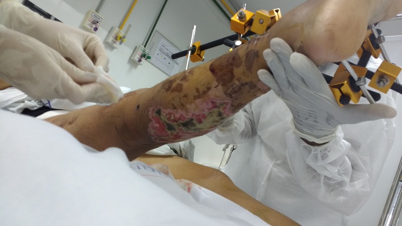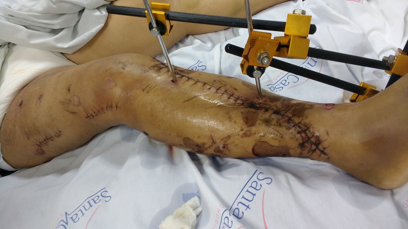 Ela passou uma semana na UTI e um todal de 40 dias no hospital até que pudesse ter alta e começar a segunda etapa desta longa e dolorosa jornada, pois a perna ainda estava com uma ferida em carne viva a ser tratada em casa.