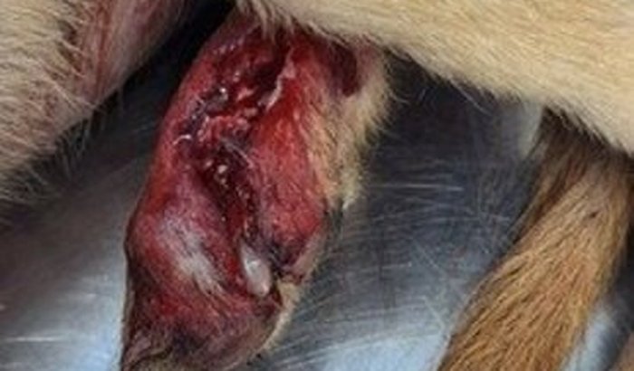 Pretinho precisou ficar internado devido a gravidade da lesão precisando de anti -bióticos,higiene criteriosa na lesão precisando de sedações e será necessário uma cirurgia reparadora.
