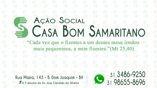 A Casa Bom Samaritano é uma instituição de assistência social de saúde, localizada no Bairro Dom Joaquim em Belo Horizonte, que está há 24 anos cumprindo a sua missão de amor ao próximo.