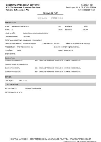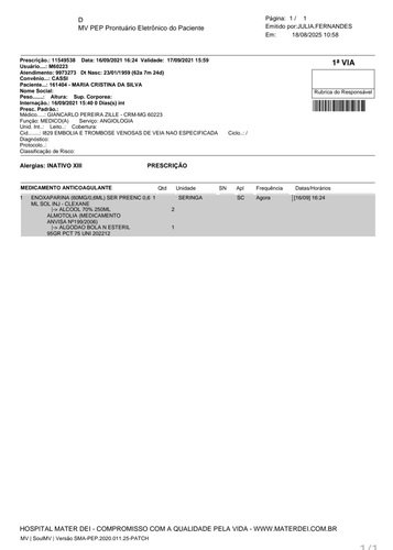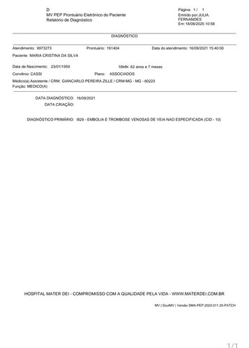 Hoje eu, Maria Cristina da Silva, tenho 66 anos e sou aposentada. No entanto, continuo trabalhando porque minha aposentadoria não é suficiente nem mesmo para pagar meu plano de saúde, necessário devido ao tratamento constante. Desde 2021 estou fazendo tratamento de trombose, com medicamento de alto custo - tive trombose após a segunda dose da vacina Astrazeneca. Além disso, vários exames não são cobertos pelo plano. Ainda não tive alta do tratamento e, ao longo desses anos, além de ter várias sequelas, já gastei cerca de 25 mil reais somente com remédios.