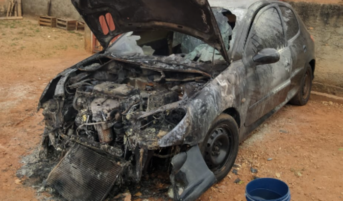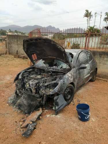 Na madrugada do dia 08 de agosto de 2022, acordamos por volta de 04hrs com nosso cachorro chorando muito, minha esposa levantou pra vê o que estava acontecendo e se deparou com nosso carro que uso para trabalho, pegando fogo. Na hora ficamos sem reação, mas logo comecei a tentar apagar o fogo, pois o carro estava de baixo da varanda da casa e o fogo poderia se espalhar pela casa; graças a Deus consegui abrir a porta do carro abaixar o freio de mão e empurrar ele para fora para evitar uma tragédia maior.