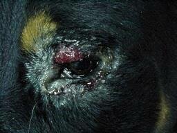 Os principais sintomas da doença são perda de apetite, emagrecimento, queda de pelos, feridas na pele (principalmente focinho e orelhas) e em estágios avançados, perda do movimento das patas traseiras.