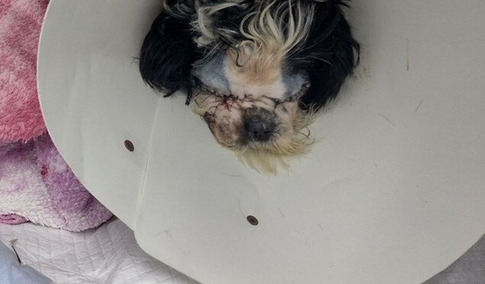 Amora passou pelo o procedimento cirugico chamado de enucleação bilateral (Retiradas dos dois olhos) afinal os bichos ja estavam comento dos olhos dela.