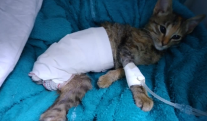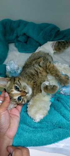 Nós a resgatamos das ruas, mas infelizmente ela precisou passar por uma cirurgia de emergência, onde foi preciso amputar uma patinha e a calda, pois já estavam necrosando.