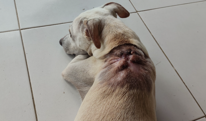 Me chamo Camilla, fiz o resgate de Pipoca na estrada de Conceição da Feira, o mesmo estava machucado no pescoço com ferida profunda e cheio de bichos. O levei para casa veterinária em cachoeira e depois de avaliação foi detectado miíase no local e feito exames de sangue e PCR, ele tbm estava com a doença do carrapato e anemia profunda, precisando ficar internado para tratamento. Após 15 dias internado teve alta e foram receitados várias medicações para continuar tratando em casa, está num lar temporário contando com ajuda de todos pra ter um final feliz.