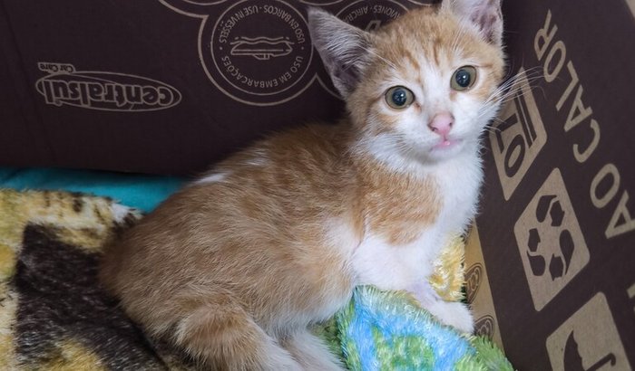 Olá. Somos Rafael e Ana, e no dia 25/11/25 resgatamos um filhotinho de gato que foi atropelado. Infelizmente sofreu uma lesão na coluna acarretando em uma paraplegia posterior, ficando com pouca sensibilidade na patinha esquerda e nenhuma, e nenhuma sensibilidade na patinha direita.