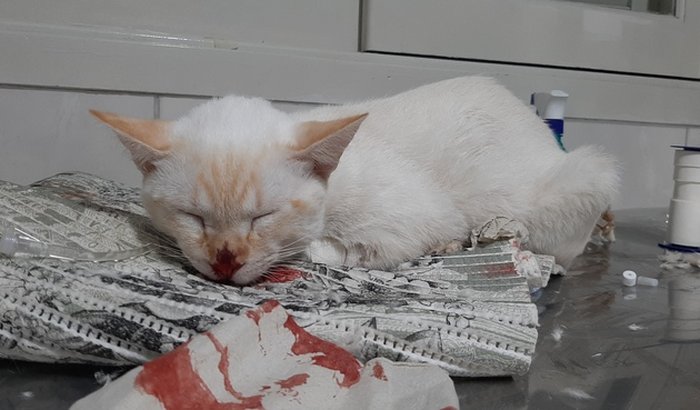Vakinha destinada para ajudar o gatinho branco, que foi resgatado de um acidente grave. Ele quebrou o úmero (braço da patinha), escapula (axila) e fez uma fenda no palato (corte no céu da boca). Precisa passar por 3 cirurgias para correção. ver tudo