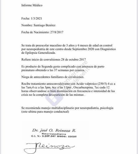 Ele está tentando trazer sua esposa ( Andrea Celeste Benitez Villegas) e filho (Santiago Benitez, 3 anos) da Venezuela, pois o menino tem Epilepsia Generalizada (laudo anexo).