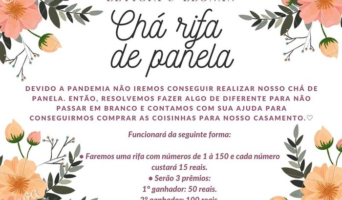 Olá pessoal, então, eu e meu noivo estamos fazendo essa rifa para conseguirmos realizar nosso sonho de casar!🙏🥰