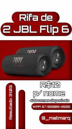 Serão duas rifas cada uma com 200 nomes. Será sorteado um nome por rifa e o prêmio será uma JBL flip 6 pra cada. O sorteio ocorrerá no dia 31/03.