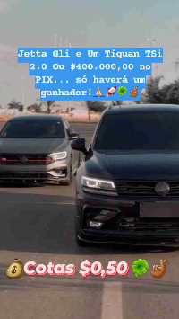 Já estou programando essa rifa desse Jetta Gli e Um Tiguan TSi 2.0,ou $400.000,00 no pix,desde 2023 Cancelei,pois está rolando muito golpe,e propaganda enganosa,tanto no Instagram como no Facebook,como por exemplo " a pessoa estar lá rifando um veículo com cota de $0,05 centavos,mais quando você acessa o link ou site,já tem um valor mínimo estipulado de cotas que você pode comprar,que obviamente bem superior a $0,05" E quem estar acompanhando todas essas ações e rifas atualmente nas redes sociais,principalmente no Instagram sabe que o que estou falando é a pura verdade. Por esse motivo e outros,decidi e pensei em fazer essa rifa por aqui pelo site da Vakinha! Você deve estar se perguntando " ué e como vou comprar minhas cotas? como vai ser o sorteio?como vou poder comprar várias cotas?"...tá vamos lá....Quem já participou ou doou para uma Vakinha,sabe que no e-mail de quem organiza a Vakinha aparece nome completo e valor doado! Então quero dizer o que,se a cota for no valor de $0,50 e você doou $100,00 É só fazer as contas 100,00 ÷ 0,50 que dará um total comprado de 200 cotas,e assim sucessivamente,pelo contrário das rifas do Instagram,aqui no Vakinha,não terá isso,você poderá comprar ou doar dizendo assim o valor que desejar,desde $0,50 à $100,00,não tem valor de doação ou comprar definido. O sorteio será feito pelo Instagram,uma semana após o fechamento da meta do valor da Vakinha que irei definir. Peço que todos que forem fazendo a doação do valor de 1 cota ou outras quantidades,que sigam no Instagram para que possa ver o sorteio Pessoal fiquem tranquilos porque lá no Vakinha,mais uma vez falando mostra o nome de quem doou e o valor doado,então anunciarei o nome do sorteado Por isso peço para quem fazer a doação do valor da cota,seguir no Instagram Estarei disponibilizando informações no direct do Instagram pessoal,lembrando que o site do Vakinha é totalmente transparente,aonde todo mundo pode ver quem estar doando,agora,só eu poderei ver o nome de quem doou e valor. Detalhe a entrega dos veículos,será feita gratuitamente,e para qualquer estado do Brasil,ou o valor em pix....Um abraço e que Deus abençoe cada um!