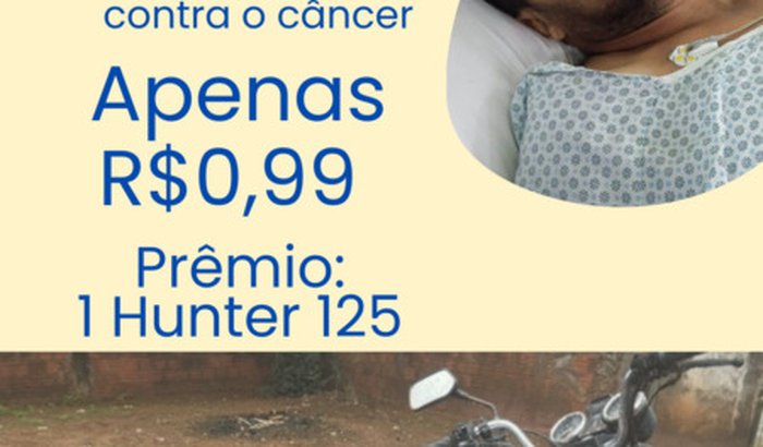 estamos fazendo uma rifa com o valor simbólico de 0,99 centavos pra concorrer a uma Hunter 125 pra ajuda na compra de alimentos e despesas de seu José que está diagnosticado com um câncer no cérebro chamado GLIOBASTOMA grau 4 se alguém se interessar em ajuda e só acessar o link abaixo e que Deus. abençoe todoshttps://conexaodasrifas.com.br/Hunter125/acoes/855bbbf7-fffa-4327-a385-c152e1e7fcb6