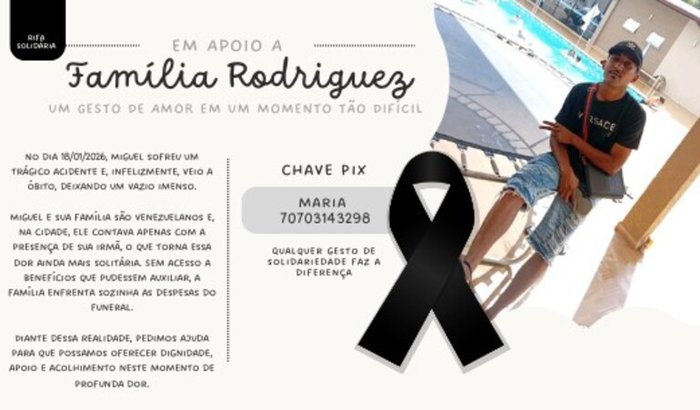 Estamos realizando esta rifa solidária para ajudar Maria Alejandra Rodriguez com as despesas do funeral de seu irmão, Miguel Alejandro Rodriguez, no valor de R$ 7.250,00.
