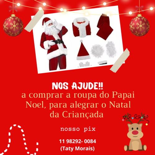 Estamos criando esta vaquinha para comprar a roupa de Papai Noel, para alegrar o natal da criançada, ajude, compartilhe, faça uma criança feliz esse Natal. Deus abençoe a todos !