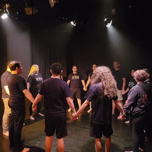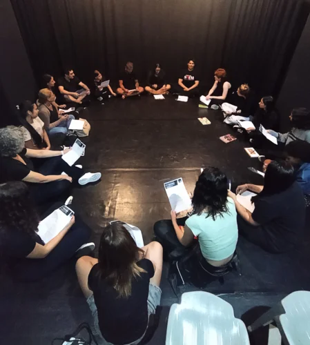 “Processo de trabalho artístico em desenvolvimento no Teatro SAEM.”