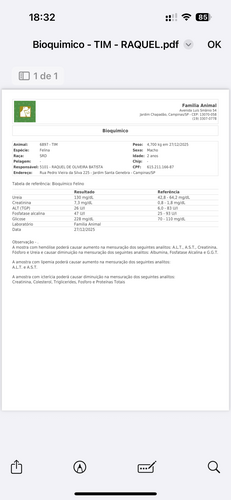 O Tim é um dos meus gatinhos, a sua internação veio em um momento bastante delicado. O problema é que os gastos ainda estão vindo, ele está internado e sem o suporte adequado no momento. Eu sou médico, mas sou residente, levei um calote de 40mil reais no início da residência, que por várias semanas de 2025 bateu quase 100horas, me impossibilitando de acumular dinheiro. Por isso, faço a vakinha, pelo Tim. Ele teve uma obstrução urinária que gerou uma insuficiência renal aguda com alterações eletrolíticas, desobstruir não melhorou o estado dele, ele continua piorando e infelizmente a clínica está pedindo por mais recursos.