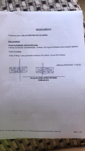 Faço todo meu tratamento pelo Sus , e hoje preciso de um medicamento chamado transtuzumabe deruxtecan, que infelizmente o SUS não cobre ele custa em torno de 24.100,00 cada aplicação.